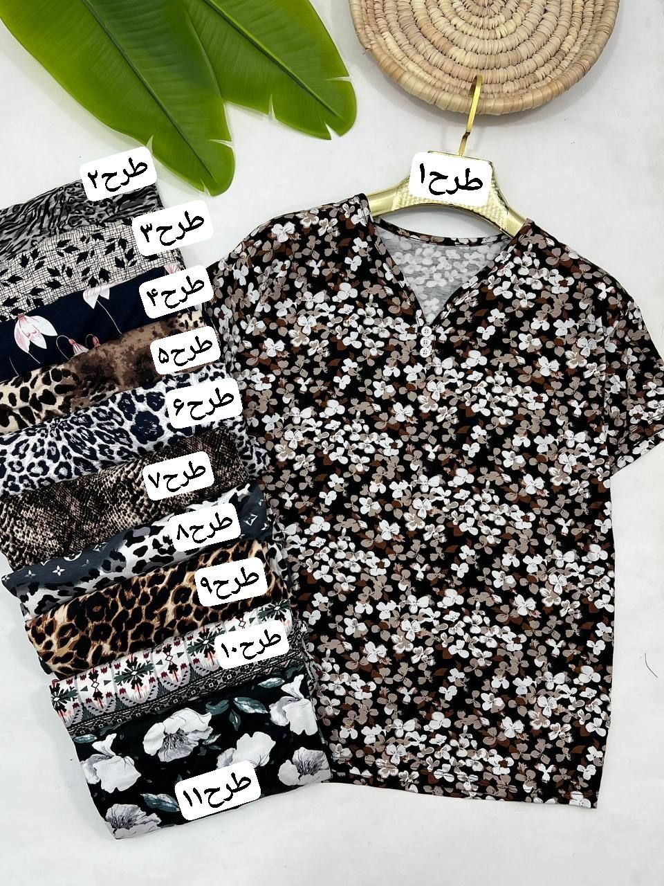 تیشرت سه دکمه طرحدار ویسکوز